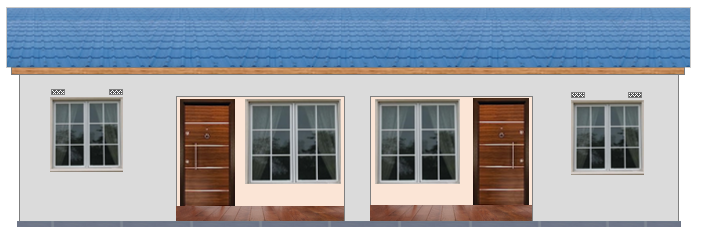 It’s a semi-detached House Plan with two (2) Bedrooms,  and other related rooms.