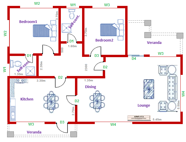 New House Plan design with three (3) Bedrooms, with other related rooms for both small and medium families living together.