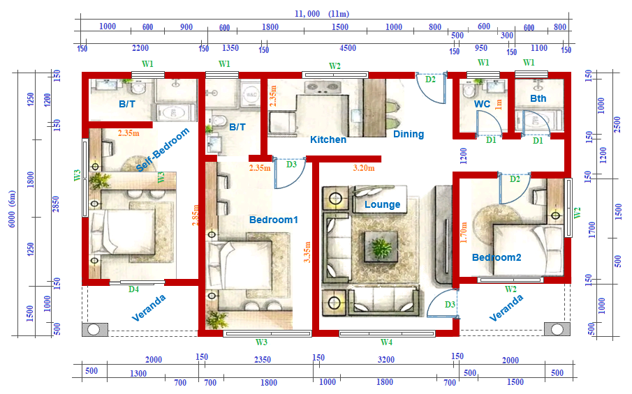 New House Plan design with three (3) Bedrooms, with other related rooms for both small and medium families living together.