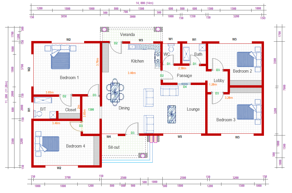 It’s a House Plan design with four (4) Bedrooms, without carports but have other related rooms.
